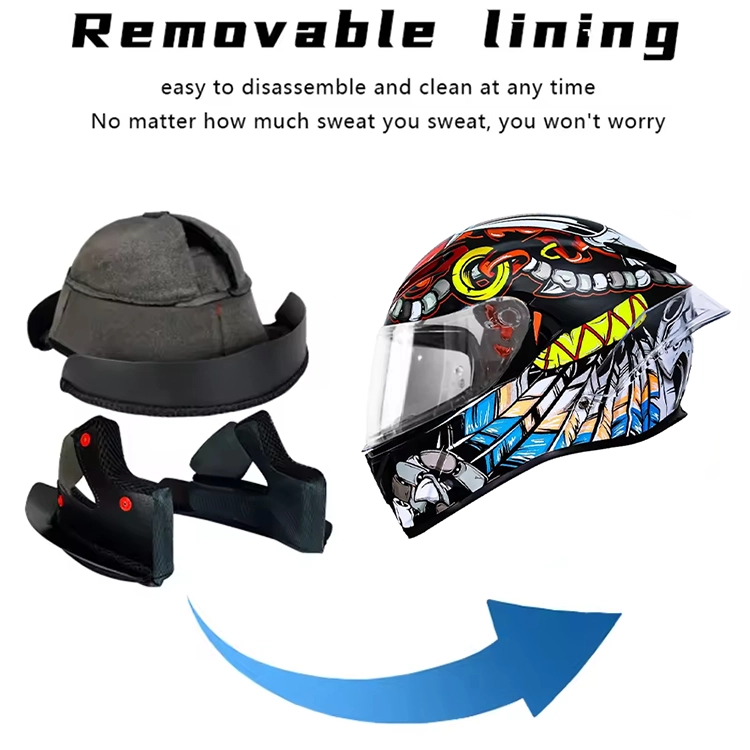 Customized Logo Motorcycle Helmet Dual Visor Full Face Helmet with Removable Washable Lining
