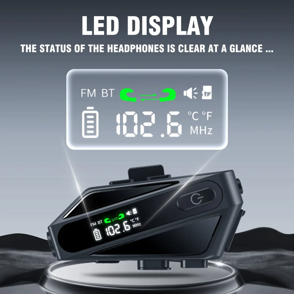 Motorcycle Helmet Bluetooth Earphone with LED Light Waterproof Digital Display Supplier