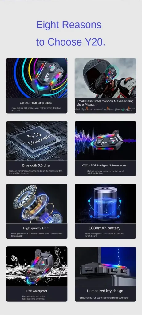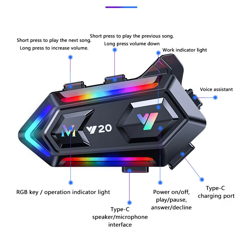 Y20 ABS for Helmet Headset Waterproof Dustproof RGB Colorful Light Subwoofer Smart Voice Factory